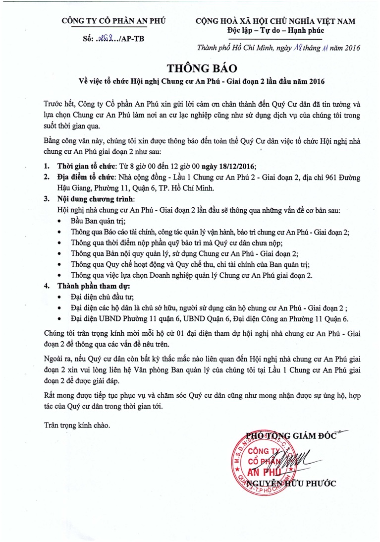 Hội nghị Chung cư An Phú giai đoạn 2 lần đầu năm 2016